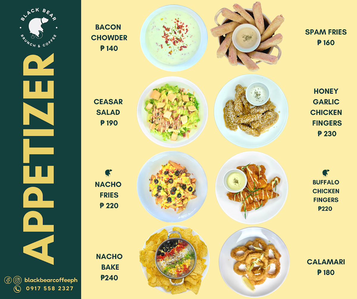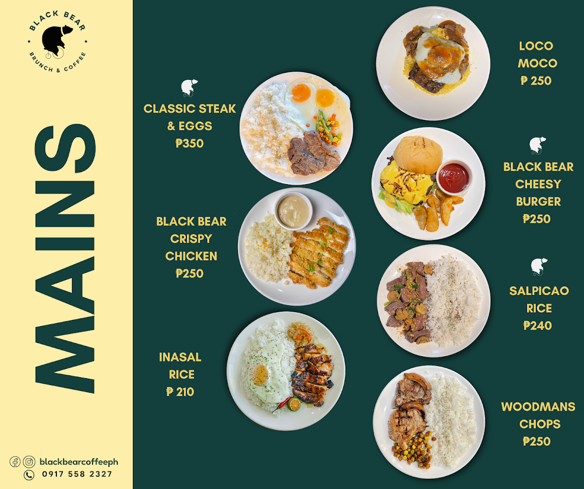 The menu at Black Bear Brunch & Coffee - Alicia features a variety of food and beverage options suitable for breakfast, brunch, and casual dining occasions. Visitors can expect offerings primarily centered around coffee and light meals.